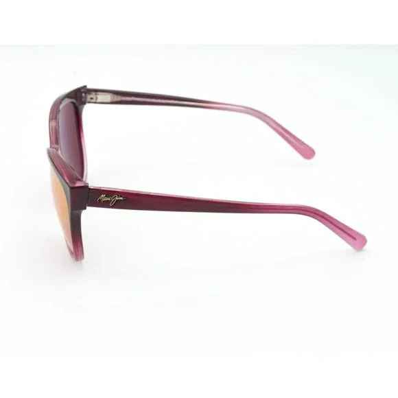New condition. Display Model. Frames are in excellent condition. Sunglasses have never been worn. Lenses may have a couple tiny dots that are practically invisible Package includes only pictured sunglassesThis pleasant, cat eye shaped frame is agreeable to many face shapes, and is available in two of our newest mirror treatments; MAUI Sunrise! The lightweight nylon and spring hinges make this an extremely comfortable frame, while the SuperThin Glass lenses offer the best optics and scratch & solvent resistance. MODEL: Olu Olu Mj 537-07AFRAME COLOR: Burgundy FadeLENS COLOR: MAUI Sunrise POLARIZEDMADE IN ITALYSize of the sunglasses: LENS: 57 mmBRIDGE: 17 mmTEMPLE: 140 mm216.po.20022 nd 114