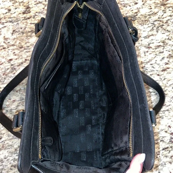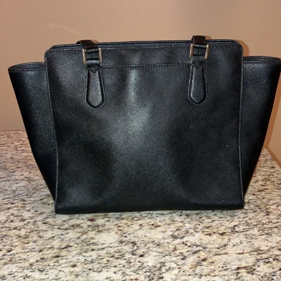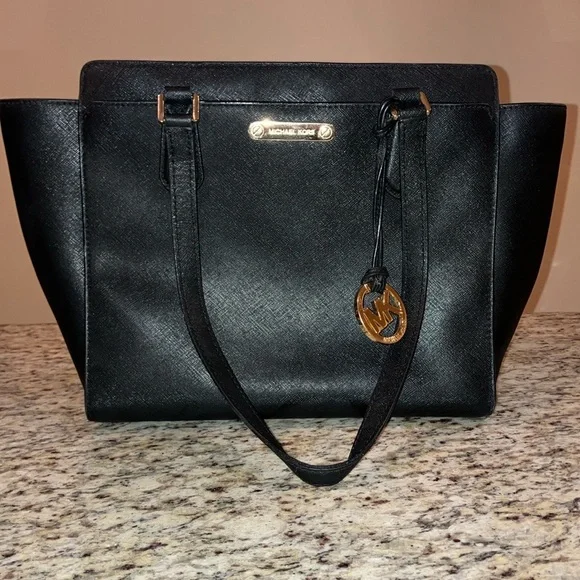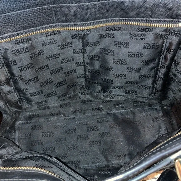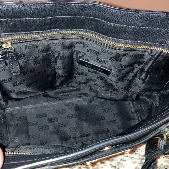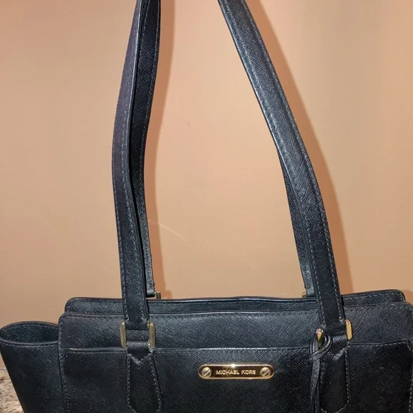 EXCELLENT USED CONDITION! No tears, stains, etc. Does not look used at all! 1 exterior back open pocket1 large exterior front button closure pocket4 open interior pockets 1 large open zipper closure pocketMK charmTop zipper closure Very clean and interior and exterior is in amazing condition.Elegant and versatile, this Michael Kors black tote bag is perfect for any occasion. Crafted with high-quality materials, it offers both style and functionality. Ideal for daily use or special events.Approx 14” wideApprox 10” lengthApprox 4 1/2” depth