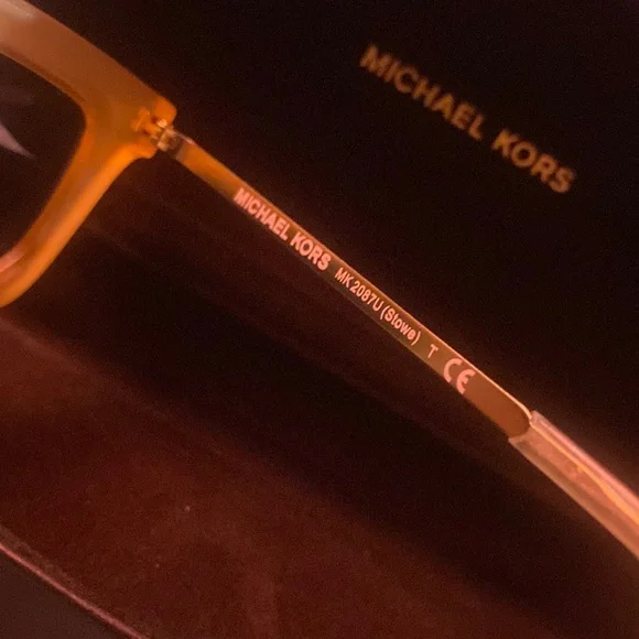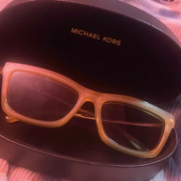 Beautiful Michael Kors shades with the Opaque milky yellow frame - in a really cool fashion style these are for a medium sized head… Beautiful springy frames to be sure they fit snugly but comfortably. Stowa 2087U style with nice cushy frame ends for that comfort fit. These are just beautiful high-end glasses just amazing with the quality & lens protection..with no issues. Nice branding right on the lense Michael Kors - plus the comfy nose guard which fits so nicely…Paired with the beautiful…1.25” 925 thick Big M pendant + with sparkle beads accents in colors 💜💙💚dangle & 925 star. Sterling Snake 17”with extender chain Italy Chain nice silky feel. Enjoy the fun of having your initial dangle from the quality necklace.. It’s not Michael Kors brand it’s just a nice M necklace…Thanks for looking & Poshing with me..Chrissy ⭐️