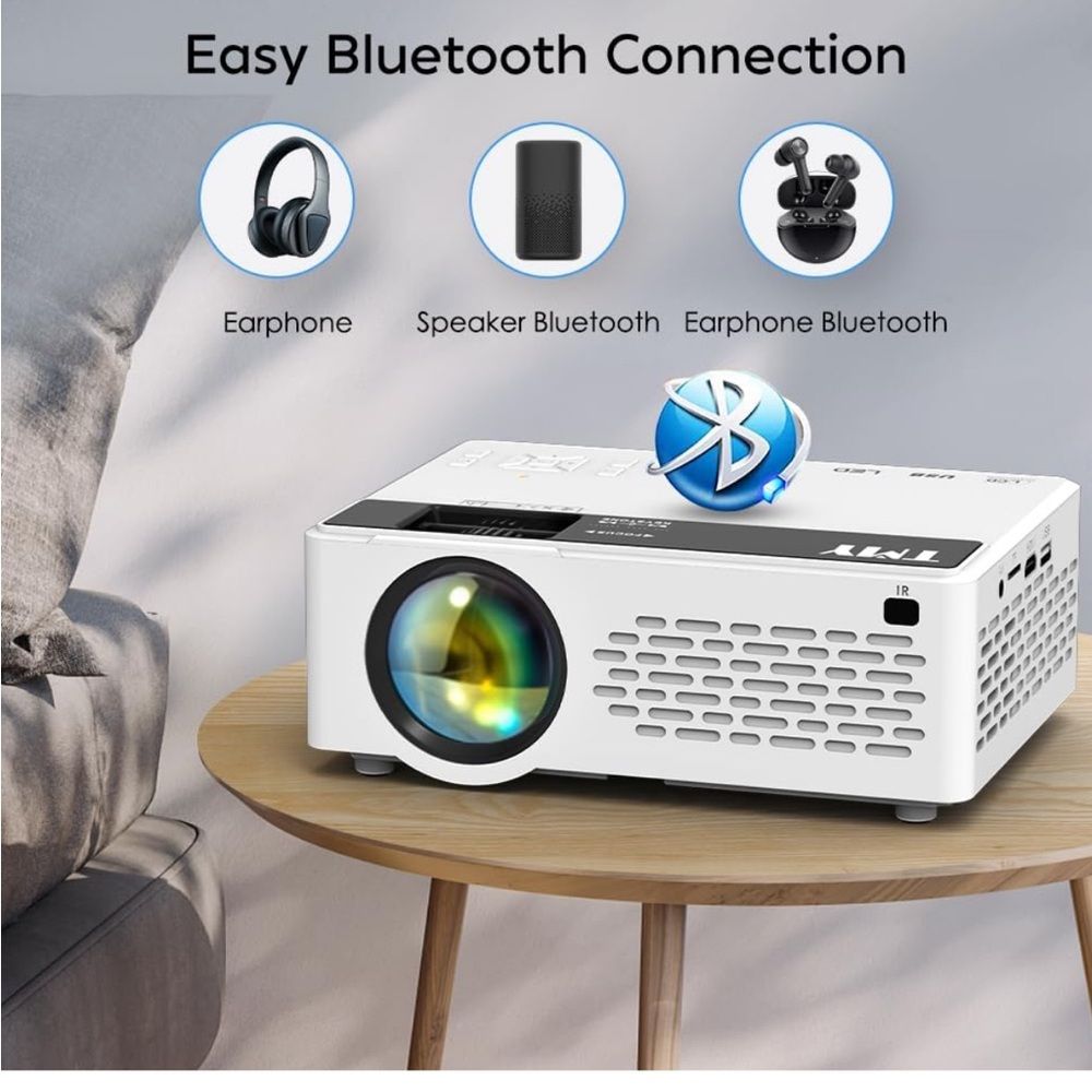 TMY Mini Projector with Screen, 1080P Full HD Portable Projector, Movie Projector Compatible with TV Stick Smartphone/HDMI/USB, indoor & outdoor use