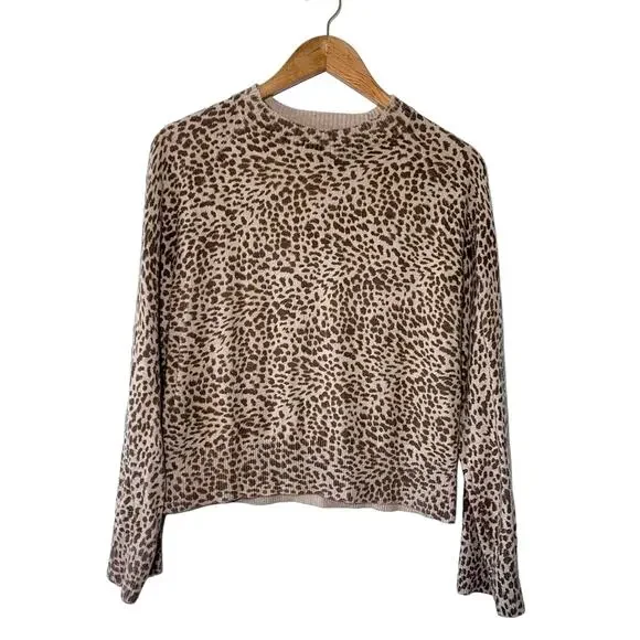 A bold leopard pattern elevates this sweatshirt.; Roundneck; Long bell sleeves; Pullover style; Cotton and cashmere blendCOLOR: Latte (tan and brown)SIZE: XSCONDITION: ExcellentFLAWS: NoneTAGS: animal print leopard cheetah spots spotted wild printed soft cashmere luxurious cozy comfy long sleeve sweater leo trend trendy trending super soft cashmere blend casual professional subtleCheck out more of our premium brands at great prices in our Wildestflowers shop.