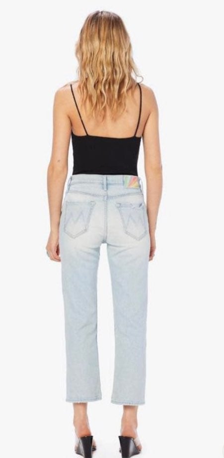 NWT - Don't tell MOTHER, but we'd rather rule in hell. Vintage-inspired high rise jean in an easy straight leg fit. Pastel sunburst back patch hits right above the bum. Minimal stretch, premium construction, SUPERIOR style.