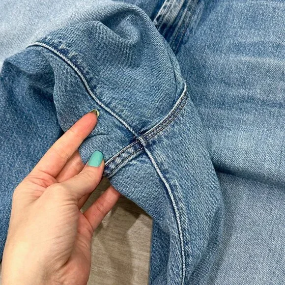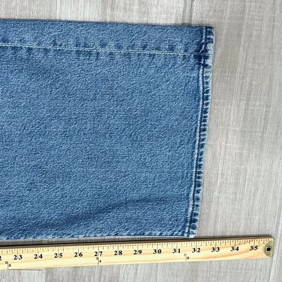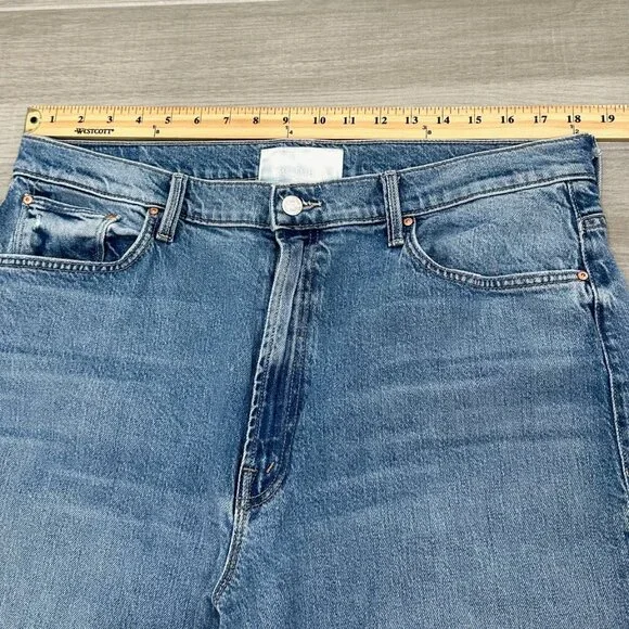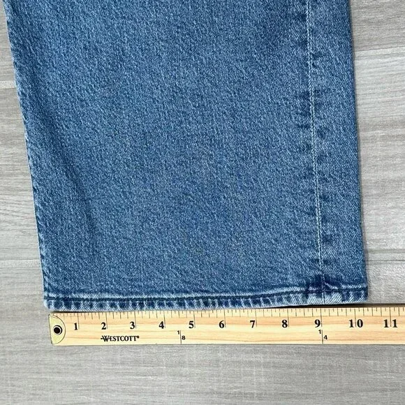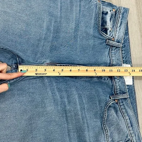 PRODUCT DETAILS: “Lights, camera, action. Jeans designed to sit lower on the hips with a loose wide leg and a 32 inch inseam with a clean hem. Strike a pose is a mid blue wash with subtle whiskering and fading at the knee.”CONDITION: Great used condition. Light signs of wear and staining on inside brand tag. No other notable damages/flaws.MATERIAL: 59% Cotton 40% Lyocell 1% Elastane. Machine Wash. Made in the USA. MEASUREMENTS- IN PHOTOS (Waist, Rise, Hips, Inseam, Leg Opening)Hi, my name is Tara. I am a lover of all things fashion! I do my best to provide quality items at an affordable price. All pieces are hand picked by me and go through a quality check prior to being listed. If you have any questions, feel free to reach out and I will be happy to help. Please review the photos and measurements carefully, because returns are only accepted if something is damaged/incorrect in the listing. Generally handling time is 1-2 days. Due to different monitors/screens, color of item may vary from the image. I do my best to edit the photo so that it shows the color as accurately as possible.All measurements are taken with garment lying flat and in resting position (not stretched).