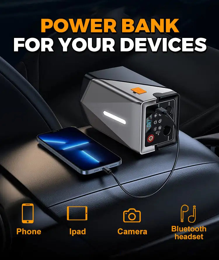 POWER BANK FOR YOUR DEVICES: Keep your devices charged on the go! This multifunctional tool doubles as a power bank, enabling you to charge your phone, tablet, or other electronics when you need it most.