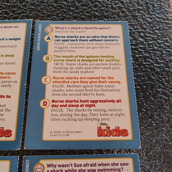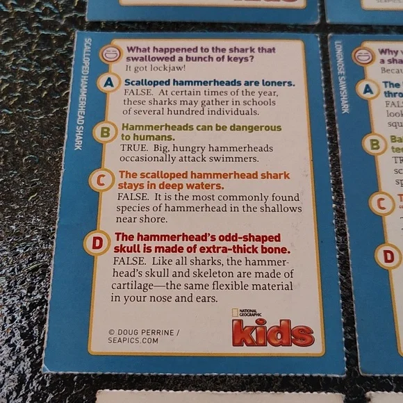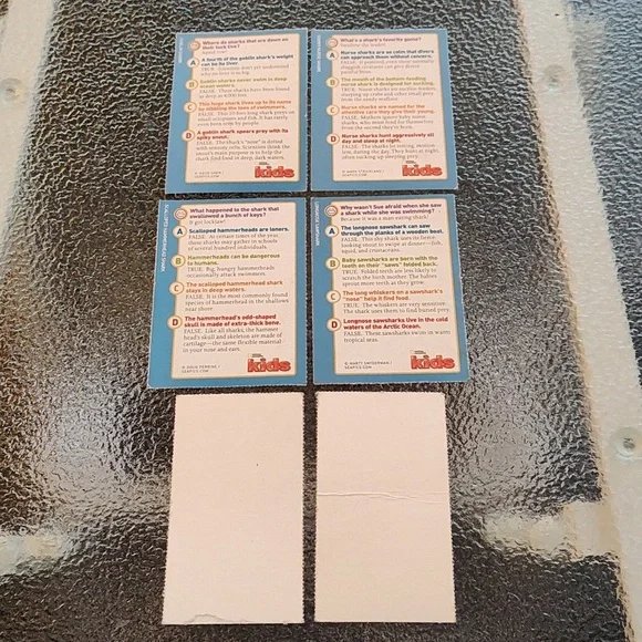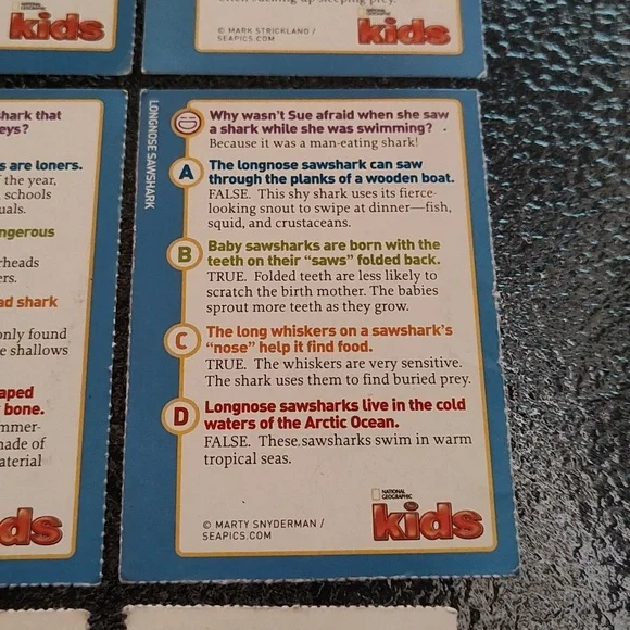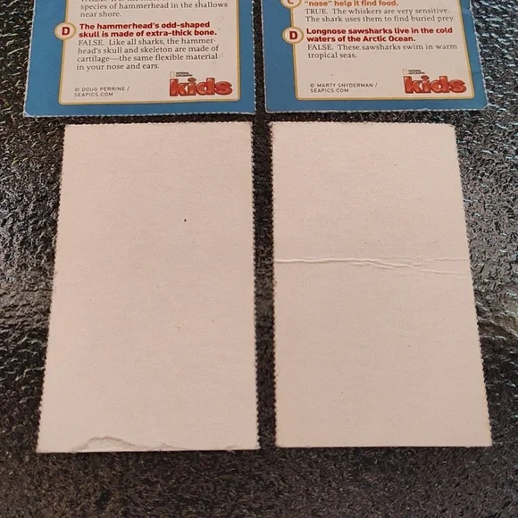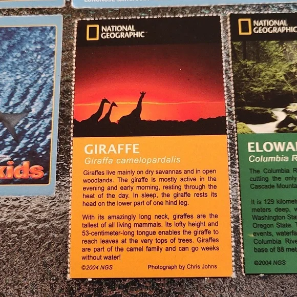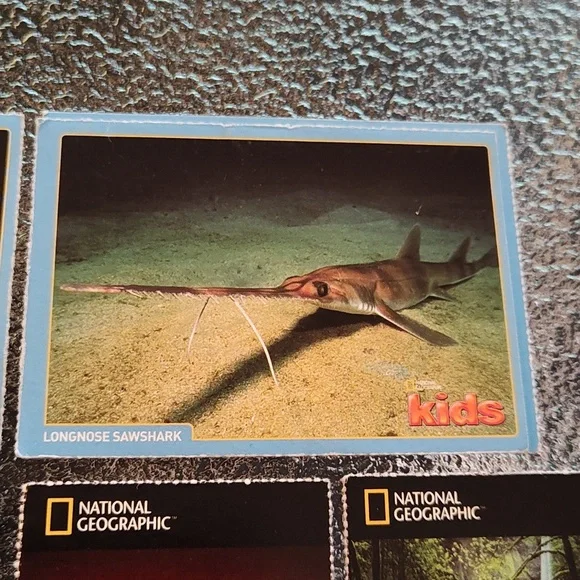National Geographic Trading CardsSet of 6 - Two different types of cards!- Goblin Shark- Longnose Sawshark- Scalloped Hammerhead Shark- Tawny Nurse Shark- Giraffe (2004)- Elowah Falls, Columbia River Gorge (2004)Good, used condition! Please check photos carefully before purchasing. Cards listed above and photographed are the cards you will be receiving. Packs are for sale as is. These are great for the collector or science enthusiast in your life! *Ships from NY! Pet-free, smoke-free home! Will consider reasonable offers! *Comment with any questions! Please ask all questions prior to purchasing. ALL SALES ARE FINAL. Please read this listing carefully and check the photos. I want you to love your purchase! 4/24Drawer #3