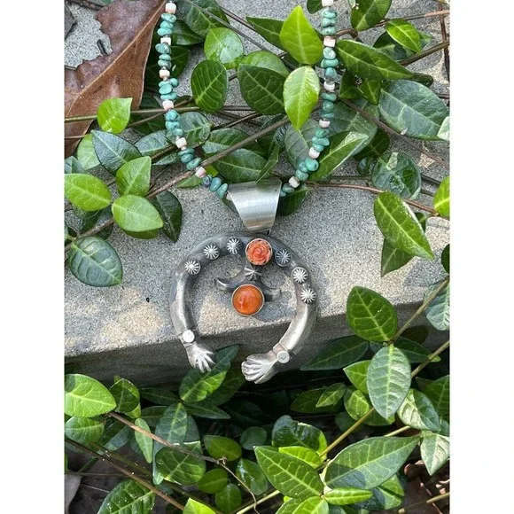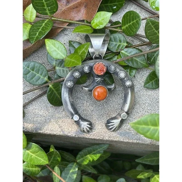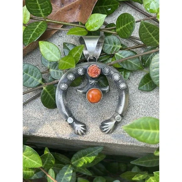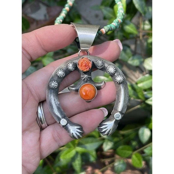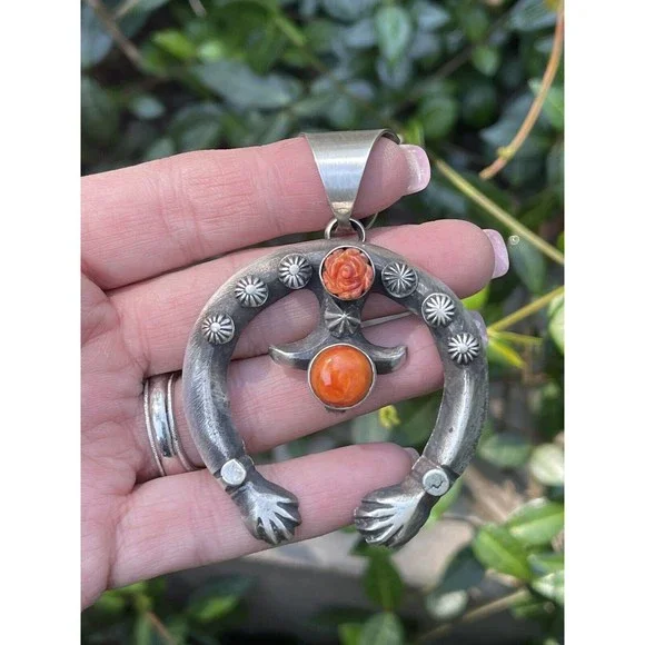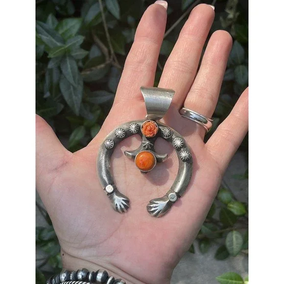 New without tags* BRAND : Nizhoni Traders LLC* ETHNIC REGIONAL STYLE : Native American* JEWELRY TYPE : Pendants* METAL : Sterling Silver* ARTISAN : Chimney Butte* MAIN STONE : SpinelStunning Navajo Sterling Silver Orange Spiny Stone Naja Pendant. Pretty Rose accent Stone. This cool piece is 2 5/8 inches long and 2 inches wide. Great piece for your favorite beads or pearls. Weight 35 grams. Signed by Artist Chimney Butte and stamped Sterling. So many options with this beauty. Pendant OnlyThank you for looking at our items. Please contact us if you have any questions.Exported By exportyourstore.com