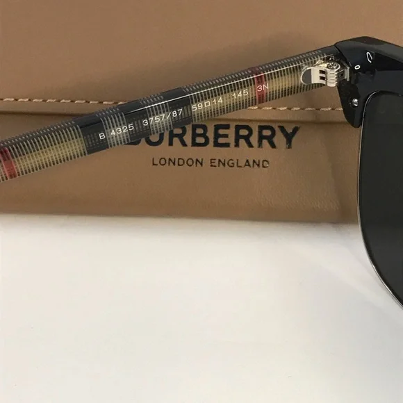 Burberry Sunglasses. Series William. Series number: BE4325. Color code: 375787. Shape: Browline. Lens Width: 59 mm. Lens Bridge: 14 mm. Arm Length: 145 mm. 100% UV protection. Frame Material: Plastic. Frame Color: Black. Lenses Type: Grey. Rim Style: Full-Rim. Burberry William Grey Browline Men's Sunglasses BE4325 375787 59.ADDITIONAL INFODEPARTMENTSunglassesCATEGORYFRAME MATERIALPlasticFRAME SHAPEPilotRIM STYLEFull-RimUV PROTECTION100% UV ProtectionARM LENGTH145 mmLENS BRIDGE14 mmCOLOR CODE375787LENSGreySERIES NUMBERBE4325SIZE59 mmLENS WIDTH59 mmINFORMATIONGENDERMensBRANDBurberryMODELBE4325 375787 59