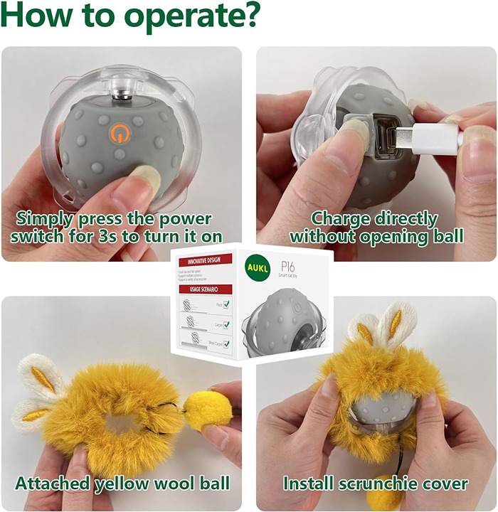 Smart interactive cat toys will auto turn off after 5mins, enter standby mode. Your cats could start game by his touch cuz the electric cat toy built in motion activate feature