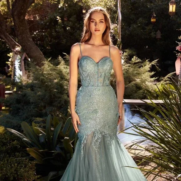 This enchanting mermaid gown is a perfect blend of romance and allure. The sweetheart neckline frames the décolletage with timeless elegance, while a sheer bodice adorned in delicate lace appliqué adds an air of mystery to this otherwise classic silhouette.Fabric: TulleLength: LongColor: SageNeckline: Sweetheart neckSilhouette: MermaidSleeve: Sleeveless, strapsBack: Lace upSkirt: LayeredEmbellishments: Sequins, lace, floral appliqueOccasion: Romantic date/evening/dinner, wedding/bridesmaid, graduation, fashion show, visiting theater/museum/restaurant, banquet, photo shoot, concert, ball gownTAGS: SWEETHEART NECKLINE SEMI-OPEN BACK DRESS, LONG MERMAID DRESS, PLUS SIZE PROM DRESS, SLEEVELESS EVENING DRESS FOR SPECIAL OCCASION, HOLIDAYS, WEEKENDS, PARTY, BRIDESMAID WEDDING, MODERN DRESS, SUPERB, CHIC, FESTIVE, EVENING, GORGEOUS DRESS, FLOOR LENGTH SKIRT, LONG PROM DRESS, GLAMOROUS DRESS, LUXURY DRESS, FASHIONABLE DRESS, EMBELLISHED DRESS, A DELIGHTFUL DRESS, MAXI DRESS FOR FORMAL OCCASION