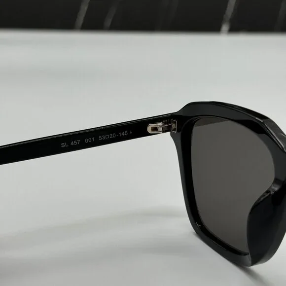 Brand: Saint LaurentModel: SL 457 001 53-20-145Condition: NewGender: WomenAge group: AdultColor: 001Frame color: BlackFrame material: AcetateLens color: GrayLens socket: 53 mmBridge width: 20 mmTemple length: 145 mmRx: Yes AvailableMade in ItalyITEM INCLUDES:- authentic sunglasses- certificate of authentic- authentic case- cleaning clothWe guarantee that all our items are 100% authentic and brand new.