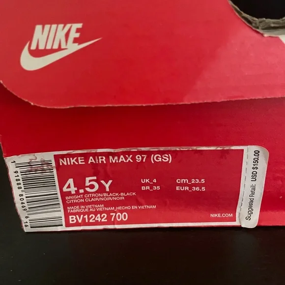 NWT Nike Air Max 97 in size 4.5y (which is equivalent to a women’s size 6.