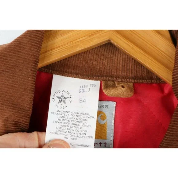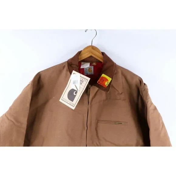 NOS Vtg 80s Carhartt Detroit 100 Year Lined Spell Out Jacket Brown Mens 50 USAMens JacketNew with defects. Has blemishes/distressing/fading shown in photos.Mens size 50Measurements are:28 inches underarm to underarm28 inches top to bottom23 inches shoulder seam to shoulder seam33.5 inches neck seam to end of sleeve cuffBrownCottonUSA madeCheck out my other items in my store!CR 6QLJ-100Year