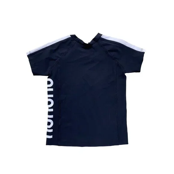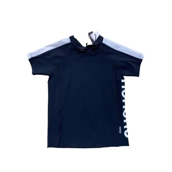 Brand new with tags.N1-0523PRODUCT DETAILSa black short-sleeve rashguard is the cool kid’s beach basic, and this one definitely takes it up a notch. sporty white stripes on the arms match the big nununu logo on the side. pop it on at the beach for a little extra spf, or just to be extra.Size: Unisex kids 4-5Condition: New With Tags
