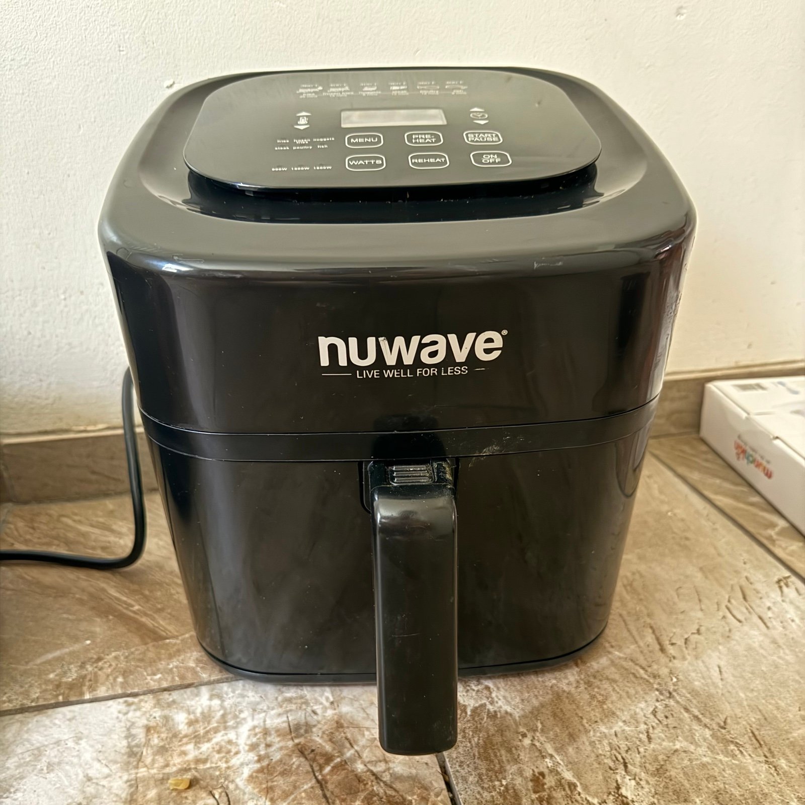 Nuwave 6-quart Brio Healthy Digital Air Fryer with One-Touch Digital Controls, 6 Preset Menu Functions & Removable Divider Insert, Black ITEM USED ONLY ONE SINGLE TIME FOR 10 MINUTES. Washed and disinfected thoroughly.