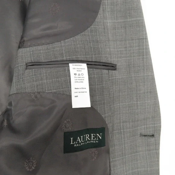 Description: NWOT Lauren Ralph Lauren 100% Stretch Wool 2 Button Blazer Sport Coat Jacket -Two button closure -Two front flap pockets-Left chest pocket-Single vented back-Four button cuffs-Wool natural stretch-Notch collarSize (Check Measurements): Mens 44 RColor: GrayFabric: 100% wool natural stretchCondition: New Without TagsItem#: 67079Measurements are in inchesArmpit to armpit: 24"Back bottom of the collar to the hem: 30 1/4"Shoulder to shoulder: 19 1/2"Shoulder seam to end of cuff: 25 1/4"BUYING VINTAGE·We do our best to thoroughly inspect all items for any visible imperfections i.e., rips, repairs, holes, stains, etc. and note as such.·Please note vintage sizes are not always comparable to today's sizing. Please refer to the measurements in the description for a more accurate depiction of the true size. If an issue should arrive, please contact us prior to leaving a negative as we strive for providing excellent customer service.Please compare your measurements to the measurements provided in the listing description to ensure a proper fit. 64819