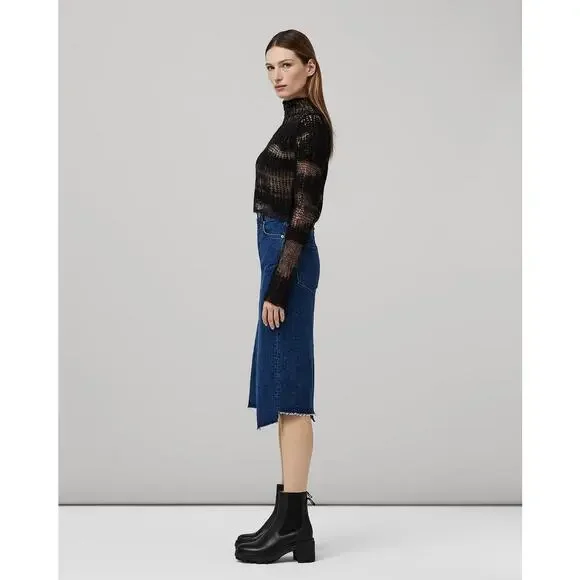 NWOTSize 30Retail $275 (Sold out on website)A dark wash midi skirt with frayed edges for a modern, western look.80% Organic Cotton, 20% Recycled CottonTurkish rigid fabric, indigo washMachine wash cold inside out with like colors. Do not use bleach.Hang to dry. Do not iron. Indigo may bleed.Specialty dagger center front button, washer rivets, button fly, raw hemImportedSlim fitting midi length skirt, sits at natural waistTrue to size