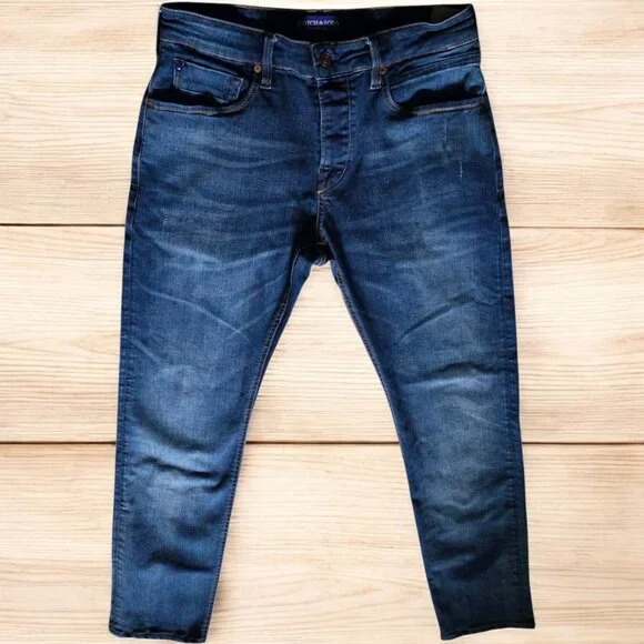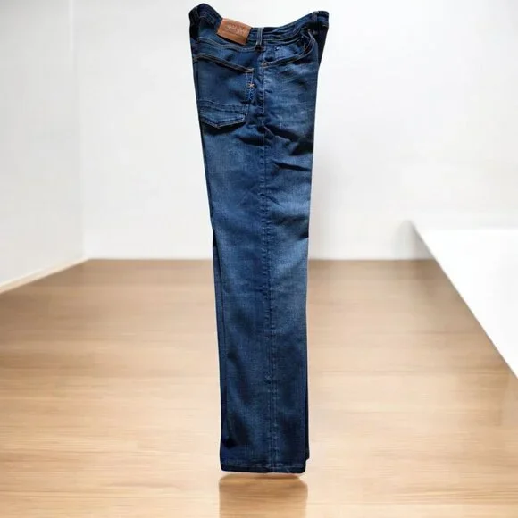 These jeans are new, tried on by son but too short.Were washed once for sanitary purposes.The Ralston regular slim-fit jeans are the perfect base for any outfit with its Indigo blue color and coated look.Their 5-pocket design and classic mid-rise cut give way to a modern denim with style and an ultra-comfortable feel.Regular-Slim * Medium RiseButton Up5-PocketMade in TurkeyMaterial 84% Cotton *14% Polyester and 2% ElastaneMeasured lying FLAT:17"*Rise 10"*Inseam 31"MJ158L03GM052225