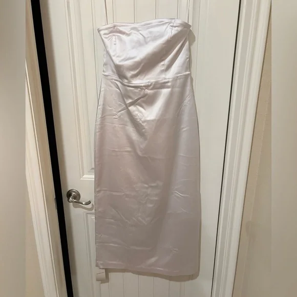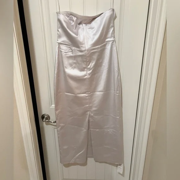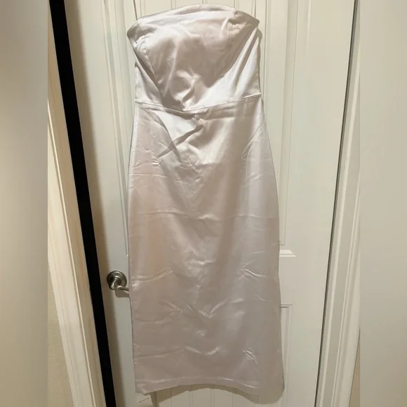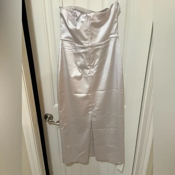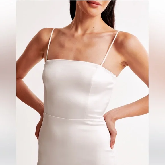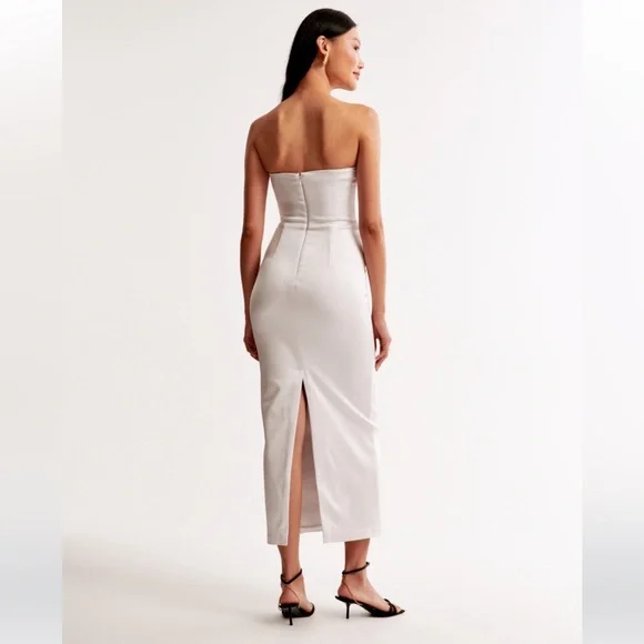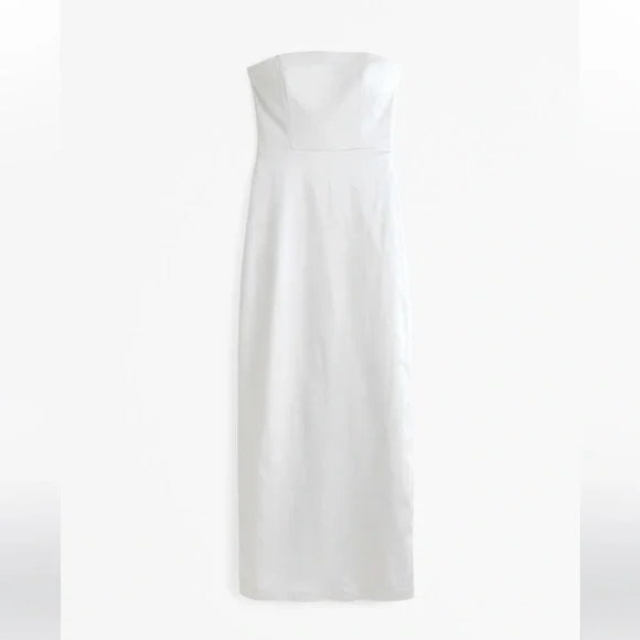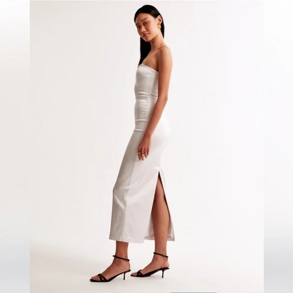 Abercrombie & Fitch Strapless Satin Sculpt Maxi Dress Color: Pearl Size: Large Details & Material:Flattering strapless maxi dress in our stretch-enhanced satin sculpt fabric, featuring a clean column skirt, adjustable and removable straps, center back-slit detail and functional zipper closure for the perfect fit.Body:62% Acetate, 35% Nylon, 3% Elastane / Lining:62% Acetate, 35% Nylon, 3% ElastaneBRAND NEW WITH TAGS! See the photos for more details! Don’t hesitate to ask any additional questions! This is a non-smoking home.