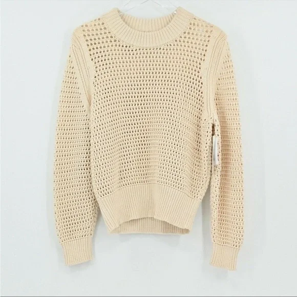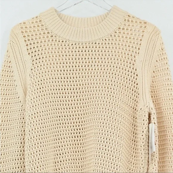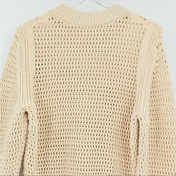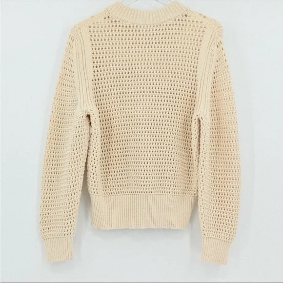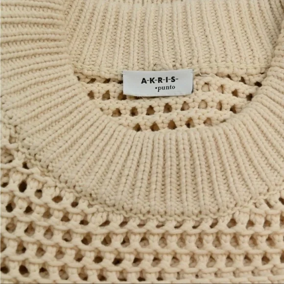 NEW AKRIS Women's Sz 6 Cream Punto Mesh StitchCotton Blend Sweater MSRP $840Brand new with tags. First photo is for modeling purposes only and does NOT reflect the item for sale.Mixed knit sweater with ribbed trim, feminine sleeves,and a round neckline.-Size: 6-Length: 23.5"-Pit to pit: 23.5"-Sleeve length: 26.5"-Open knit style-Stretch-Oversized-Balloon sleeves-Ribbed neck, hem and cuffs-Cotton blend-Made in SwitzerlandAll measurements are approximate and feel free to ask any questions you might have. Could make an amazing gift 🙌🏻