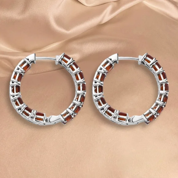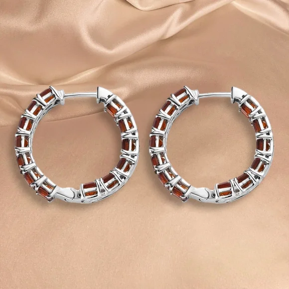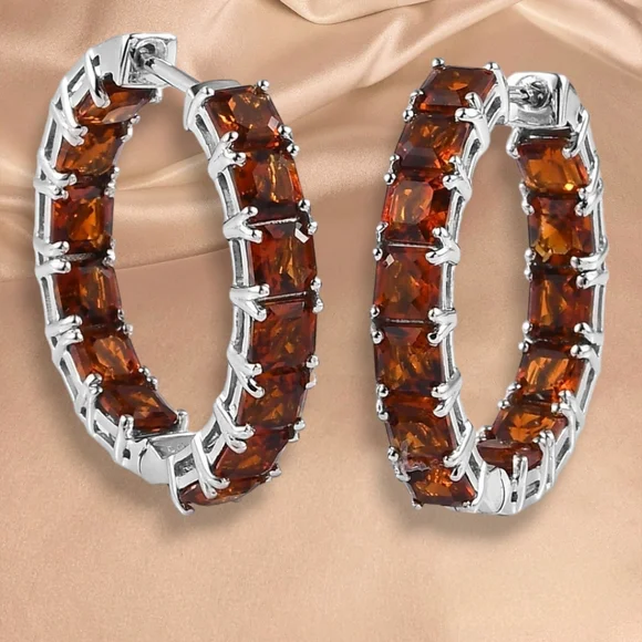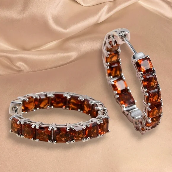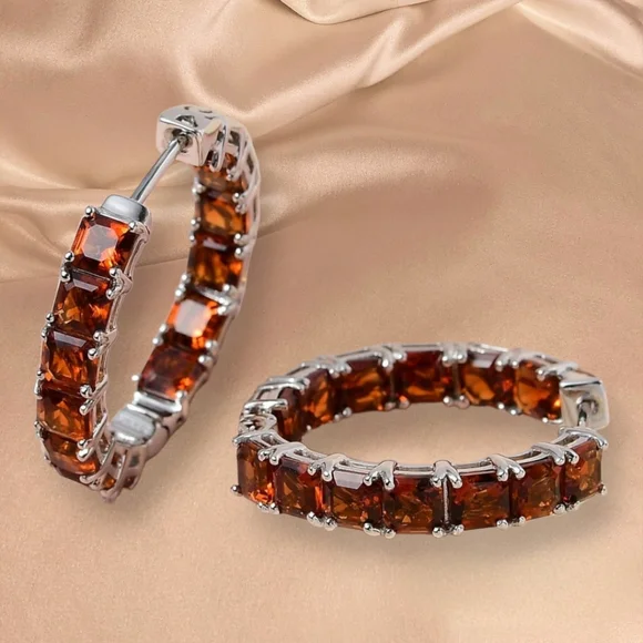 NEW WITH TAGS IN 🎁 BOXASSCHER CUT BRAZILIAN RED CITRINE HOOP EARRINGS IN PLATINUM OVER STERLING SILVER, 8.25 CTW!🍒 These inside-out Sterling Silver hoop earrings capture a sleek and stylish look. Inspired by the minimalism theme, these earrings symbolize pursuits of simplicity. The Asscher cut gemstones are finely studded with a neat finish, offering brilliance and vibrance of colors. These earrings are crafted in Sterling Silver with a fine Platinum finish. Adorn these earrings to magnify your look with their feminine poise.🍒 A minimalism theme ensures an elegant look. These genuine gemstone earrings in sterling silver complement the trendy designs.🍒 Beautifully designed in sterling silver with a platinum finish, these earrings offer a remarkable sheen. The frame is suitable for all skin types.🍒 The Asscher cut is a unique blend of square and step-cut shapes, allowing brilliance like the hall of mirrors. 🍒 The latch closure ensures hassle-free wear.🍒 26 Octagon Brazilian Cherry Citrine Gemstones, Transparent, Red, Prong Set, 8.25 CTW. NEW WITH TAGS IN 🎁 BOXTHANK YOU FOR SHOPPING MY CLOSET AND DON'T FORGET TO BUNDLE FOR MORE SAVINGS!