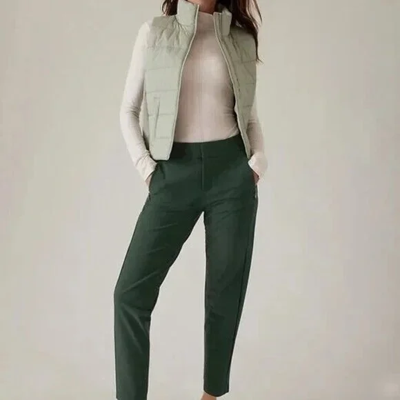 🌿 NWT ATHLETA Stellar Trouser – Seaweed Snack Green – Women's Size 12 🌿Brand new with tags! Elevate your athleisure wardrobe with the NWT Athleta Stellar Trouser in the unique and stylish “Seaweed Snack” green color. Designed for comfort, style, and versatility, these high-rise, straight-leg pants are perfect for work, travel, and everyday wear.Made with Athleta’s premium, breathable performance fabric, these trousers offer 4-way stretch, wrinkle resistance, and a sleek, polished look. Features include a flat waistband, side and back pockets, and a slimming silhouette that flatters every shape. Whether you're headed to the office, running errands, or catching a flight, these travel-friendly pants will keep you looking effortlessly chic.💚 Style: Stellar Trouser💚 Size: Women’s 12💚 Color: Seaweed Snack (a deep olive green)💚 Condition: New with tags (NWT)💚 Material: Performance stretch fabric💚 Fit: High-rise, straight leg💚 Features: Wrinkle-resistant, breathable, quick-drying, side and back pockets, versatile day-to-night look