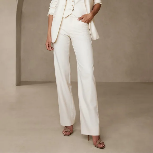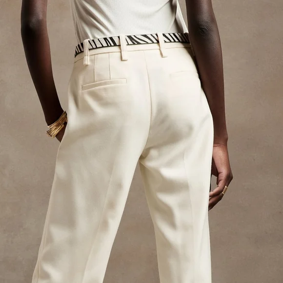New with tags.Sharp and smart, this extra long pant is cut to wear with your favorite heels. A high waist and straight leg adds length to every step.ITALIAN WOOL: Soft and smooth, this wool fabric from Italy's Marzotto mill is perfect for cooler weather.Zip fly with hook-and-bar closure. Belt loops.Front and back pockets.Unlined.Straight Fit: High rise (10.25"). Slim through the hip and thigh, straight leg.Extra long length - so you can wear them with heels.Inseams: Regular 33", Long 36"100% wool.Dry clean.Color: Transition CreamAvailable in sizes 14 Regular, 14 Long, 18 Long, and 20 Regular. Please note that there is no filterable tall/long options on , and that purchasing the size 18 option will be for the Long inseam. The reason I have a 14 Long option available is because I also have a regular (and filterable) size 14 available, so it is findable in search for those who fit a size 14.