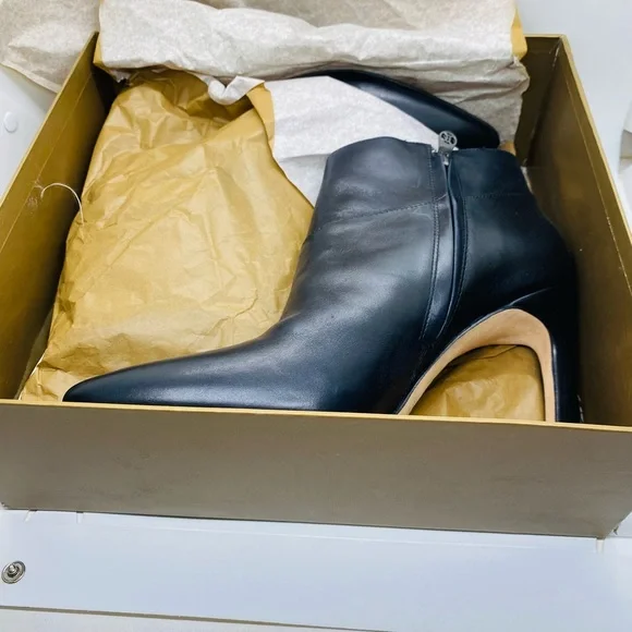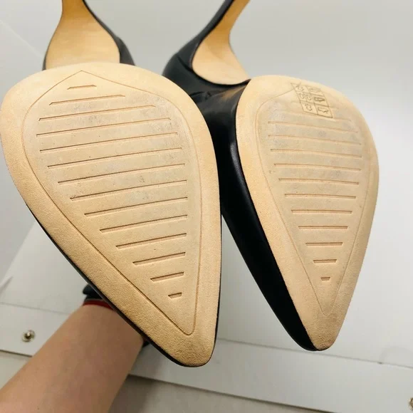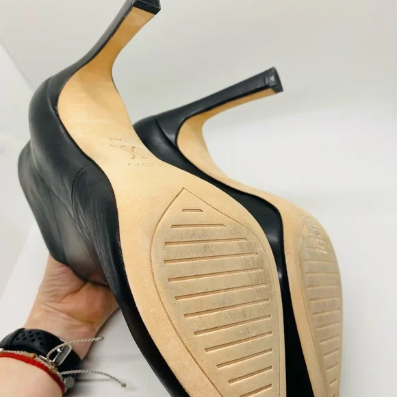 Brand new. In box with dustbags as pictured. The softest calf leather ever! Will mold to your foot and be so comfortable. 4” stiletto heels for a great night out! There is some very verylight wear on the ball of the foot on the bottom of the shoes (as pictured) from trying on at the store. They have never been worn, but wanted to call this out so no surprises.