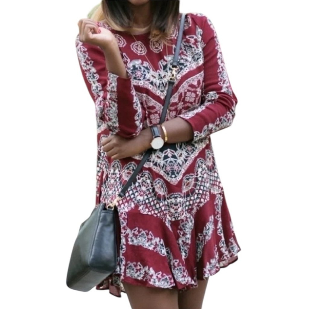 Step out in style with this elegant red patterned dress. Perfect for any occasion, this dress combines comfort and fashion effortlessly.