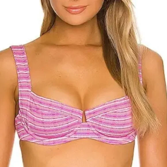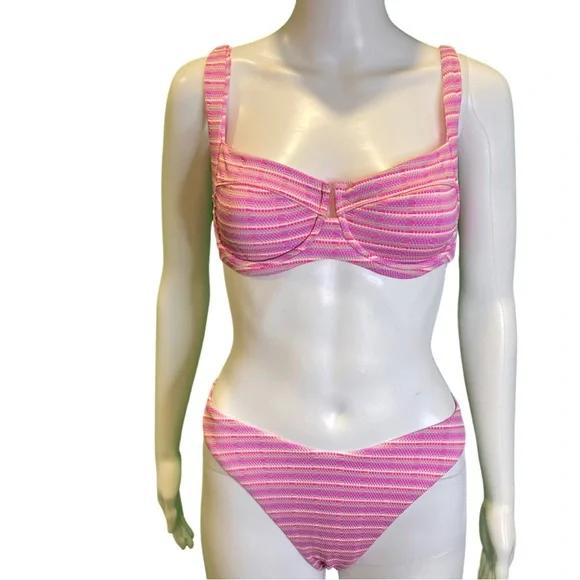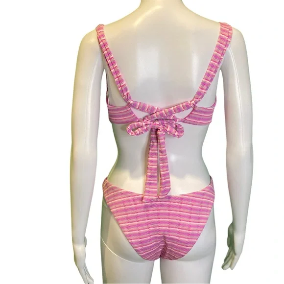 SOLD AS A SET - Typicallysold seperatelyCamellia Top- Sz - L - $114 retail - Electric Pique Stripe- Adjustable tie back for customized fit- Underwire- 96% nylon and 4% spandex- hand wash- Style # PICAT22Bottom - Sz L - $92 retail - Pull on High leg scoop front- Bitsy coverage- 96% nylon and 4% spandex- hand wash- Style # PICNB22