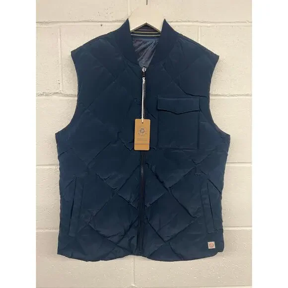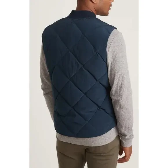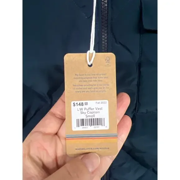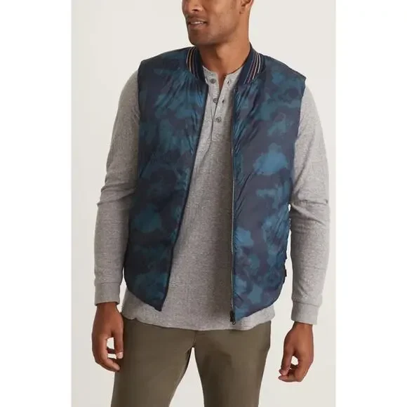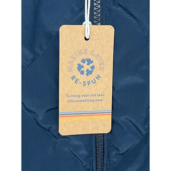 Brand: Marine LayerSize: SmallMeasurements: 21” pit2pit 25-26” lengthCondition: new with tagDetails: Blue puffer vest. It's fully reversible, so you basically get two vests in one. Magic. This is a poly/nylon ripstop woven (psst.. ripstop means the fabric is woven using a construction that makes it resistant to tearing and ripping. Clever name, amirite?) with vegan insulation. The Shell is peached for a sueded feel.70% Polyester, 30% NylonReversible Ribbed CollarStandard Fit * MISSON *We only list 100% authentic items. We have been proudly selling since 1998, and take great pride in our business. Our goal is to make sure every customer is happy with their purchase and satisfied. If there is any issues please feel free to contact us and your message will be responded by us very soon. Please ask questions on an item before you submit an offer or click to purchase. * SHIPPING *Your purchase is important to us and will be packaged carefully to ensure it gets to you safely.If you are interested in buying quite a few items , contact me and I will be able to give you the best shipping price possible. Orders we receive are shipped the same, or next business day of payment received.If vacation mode is on , it will be a longer handling time, the listing will show an extended handling time.
