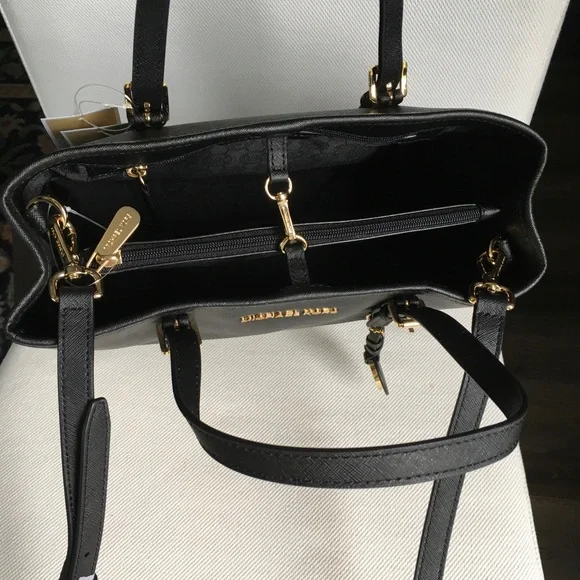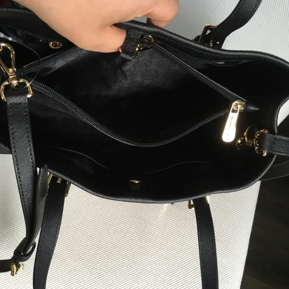 NWT Michael Kors Jet Set Travel Medium Leather EW Tote in Black