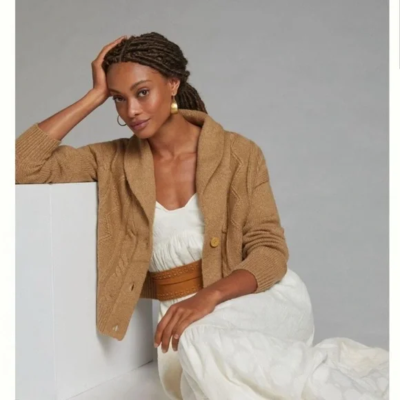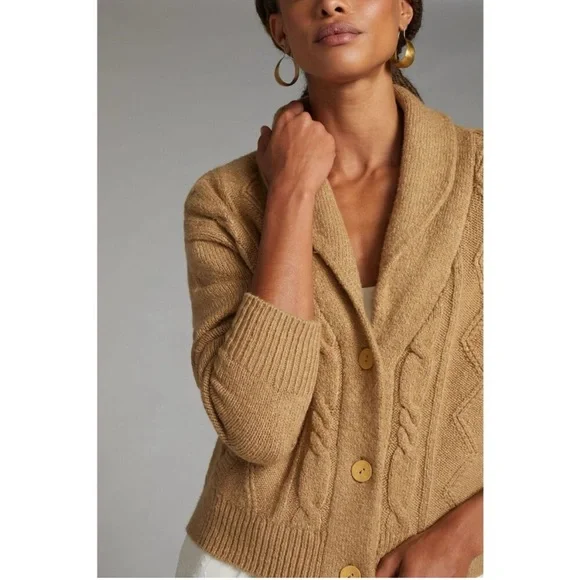 Anthropologie's exclusive collection of premium denim + everyday outfitting offers an expansive array of made-for-you pieces that are versatile, comfortable and inclusive of all sizes, styles and vibes.Cable knit cardigan in relaxed fitSide pocketsButton front closureSo soft! Materials56% Cotton32% Acrylic 11% Polyester 1% Elastane Brand new with tags! In great condition, no flaws