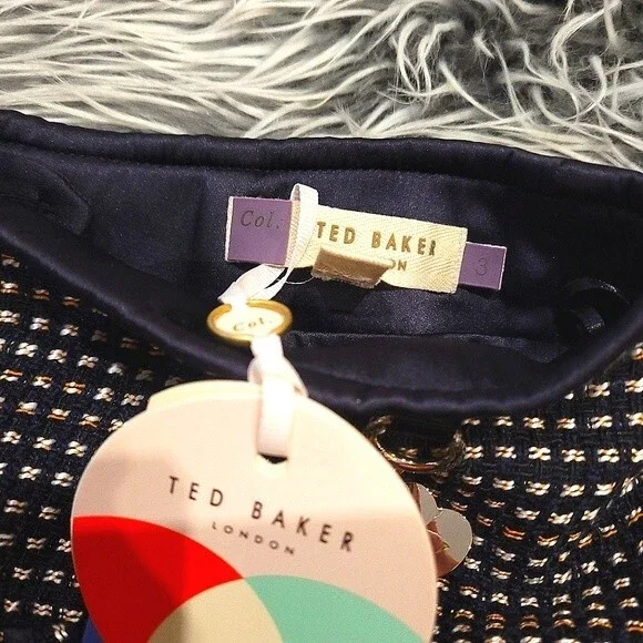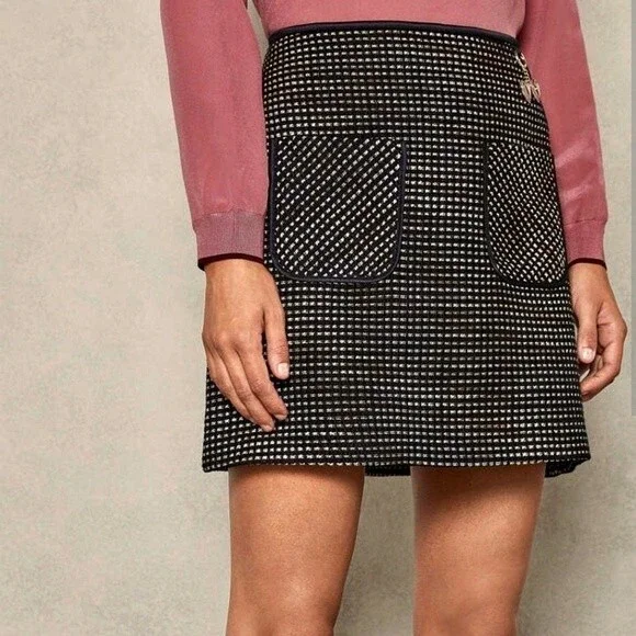 •Tweedy checks give rich texture to a cute patch-pocket miniskirt with a double-heart key fob charm dangling from the side. •Subtly sparkles ✨️ •Pairs well with knee high boots!•Zip closure •Front patch pockets •Lined •60% viscose, 40% polyester•Size Ted 3 = M = US 8 •Pls select ted size when purchasing.returns will not be accepted if you select US size. 👀boucle winter mini skirt colour by number shaula designer alice and olivia dvf rebecca taylor joie vince kate spade coach veronica beard