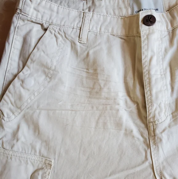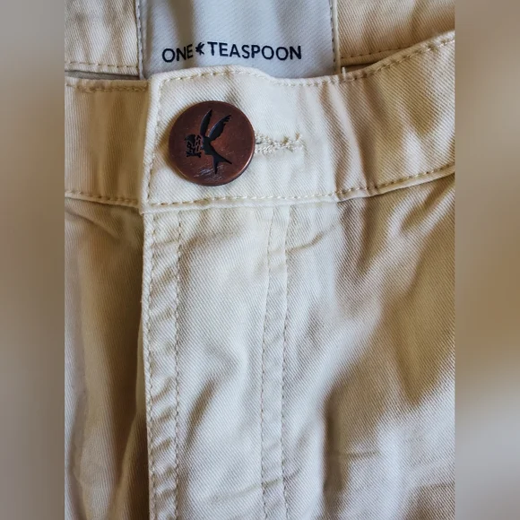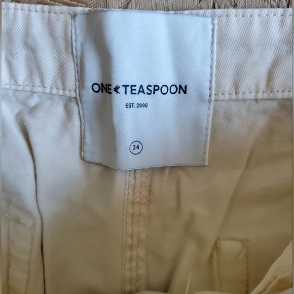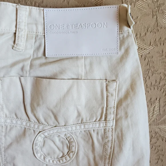 One Teaspoon Cargo Motion PantsPart of our brand UTILITY CAPSULE-a unique collection that melds form, function, and femininity. The Cargo Motion JeansOur newest 90s-inspired Cargo fit denim jeans-upgraded for today.●Size 34●Color: Sand●100% Cotton Features:●Mid-waist fit●Relaxed tapered fit on the legs, with added utility cargo inspired details●Large extra roomy pockets ●Cargo pants-but denim.●Upgrade your world!Please forward any questions about this item!