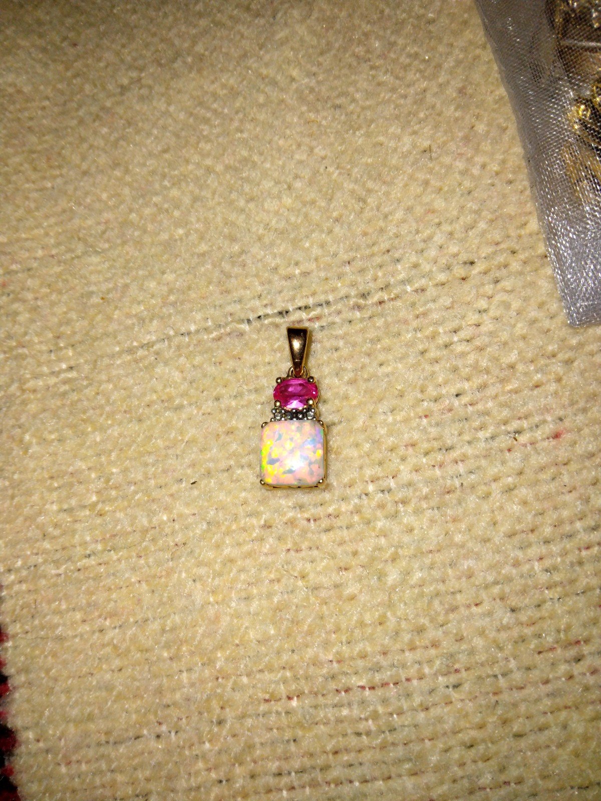 925 stamped elegant necklace pendant featuring Opal with Ruby.