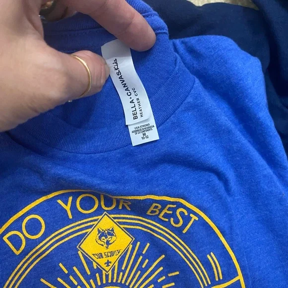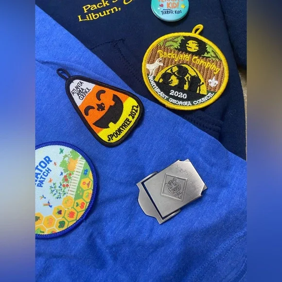 ⚜️Brand: Pack 504 ⚜️Condition: Great Condition ⚜️Size: ✔️Kids T-Shirts M✔️Adult T-Shirt L⚜️Color:Blue ⚜️Details:PACK 504 - Bundle6 patches Belt piece Kid’s Jacket Kids Tshirt Adult Tshirt ⚜️No holes or rips or stains in the clothes ⚜️Smoke-free house✔️Same or Next day shipping.✔️P.S. I would love to accept your offer, Bundle&Save!