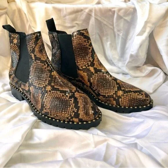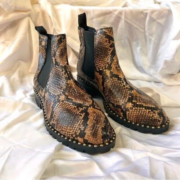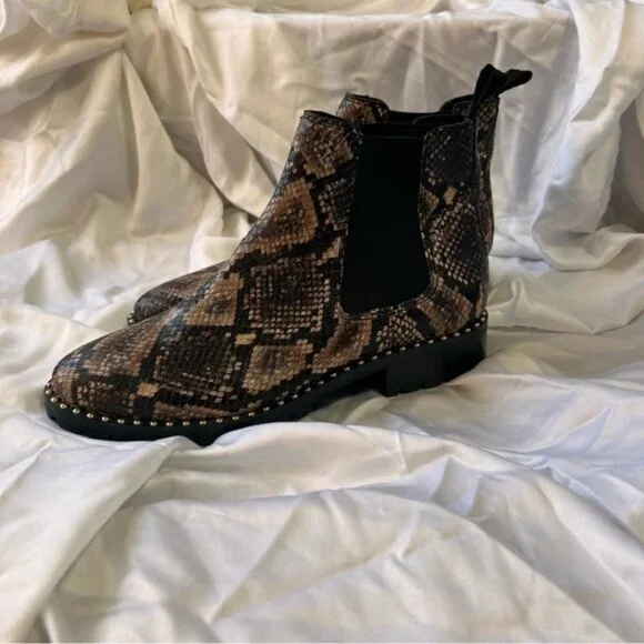 PAIGE NWOT Cecily Stud Trim Snakeskin Embossed Chelsea Boots - Size 7A classic Chelsea boot in luxe Italian leather gets a boost of edge with exotic snakeskin print, tiny studs along the welt and a grippy lug sole.- Pull on style with elastic gore insets - Back pull loop- Removable insole - Lug sole - Leather upper and lining/rubber sole3/4" heelQuestions just ask!