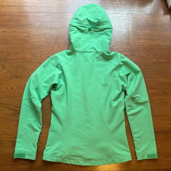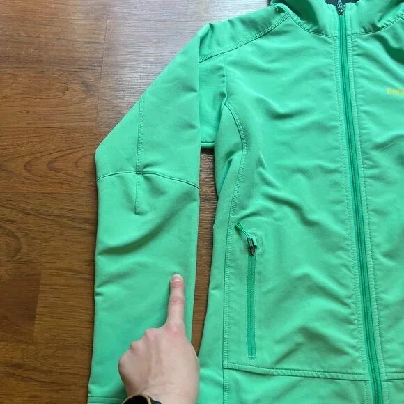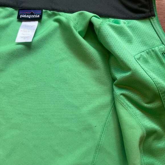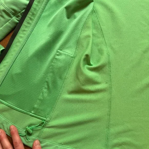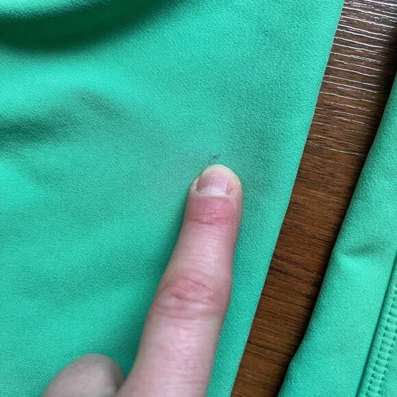 Beautiful spring green color! (Please note the last 2 photos are NOT accurate of the color). Mild pilling inside of jacket (see photos) and one very small spot on the R sleeve (see up close photo and zoomed out photo where I am pointing to the location).Measurements (Please note that all measurements are approximate and taken with garment lying flat):Length is 24" as measured along the front zipper.Armpit to armpit is 18.7".