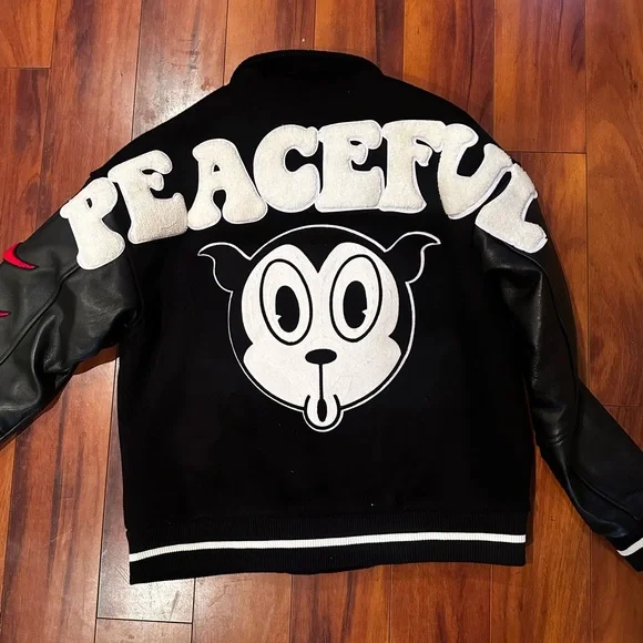 Peaceful People varsity jacket size LWorn onceBlack and white Peace & Love varsity jacket #skater #college #fashion #jacket #varsityStylish and comfortable, the Black Varsity Jacket features a bold design with embroidered details. Perfect for making a statement.