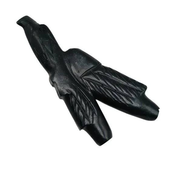 Peruvian Kuripe Hand Carved Stone Inca Condor Design Andean Ritual Tool for Cleansing and HealingThis handcrafted Peruvian kuripe is carved from stone and features a stunning Inca condor design, symbolizing freedom and spiritual connection in Andean culture. The kuripe is a traditional tool used for the ritual inhalation of rapé, a practice rooted in ancient indigenous traditions for spiritual healing, cleansing, and personal transformation, the kuripe facilitates ceremonies to explore the body, cleanse the mind, and free the spirit. Its unique design honors the rich heritage of the Andean region, making it both a functional ritual tool and a meaningful cultural artifact. Handcrafted by Peruvian artisans CuscoMeasure 4.4 inches