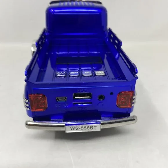 Stereo Sound Wireless Portable Speaker WS-558BT Long Standby High Power Bluetooth Truck Speaker Wireless Speaker Model Number WS-558BT BTVersion V4.1 BT range Up to 10meters Battery 1200mAh / 5V Audio output 5W stereo speaker Aux input 3.5mm Range of Frequency 60-20KHZ Signal-Noise Ratio ≥80dB Functions BT/USB/TF/AUX/FM Charging time 2-3H Playing time 90-130minutes Color Blue Accessories USB cable,Aux cable.