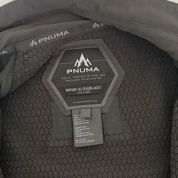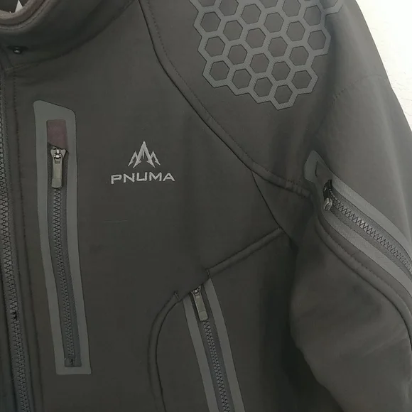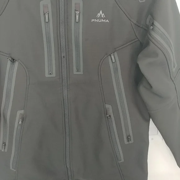 Pnuma Waypoint All-Season Jacket Gray / Green Lined Long Sleeve Color: Gray / Dark Green Size: SMaterial: 100% PolyesterFeatures: 2 Front pockets, 2 Chest pockets, 1 Sleeve Pocket, 1 Inside pocket, 2 Open Chest pockets.Flat measurements.Length: 29"Chest: 20"Sleeve: 26"Pre-Owned Condition. Flaw: Missing zipper hood.