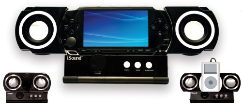 The i.Sound PSP Pro speakers are customer designed for use with the PSP game console, and are also compatible with all iPod models, MP3 players and all audio devices with a standard headphone output. With high-efficiency speaker drivers, bass boost and surround sound effect buttons, all of your favorite games, videos and movies can be heard in crystal clear stereo sound. PSP dock includes a built-in charger, allowing you to power up your PSP while you enjoy your favorite music and movies.