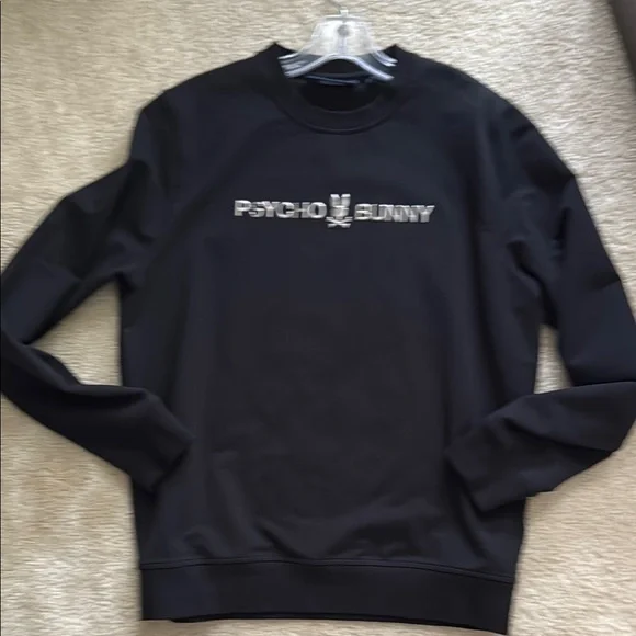 Experience the perfect blend of style and comfort with the Psycho Bunny Black Crewneck Sweatshirt . This classic pullover features a sleek design with a ribbed collar trim and a bold white logo and text on the front. Crafted from a smooth cotton blend, it offers a casual yet refined look for any occasion.