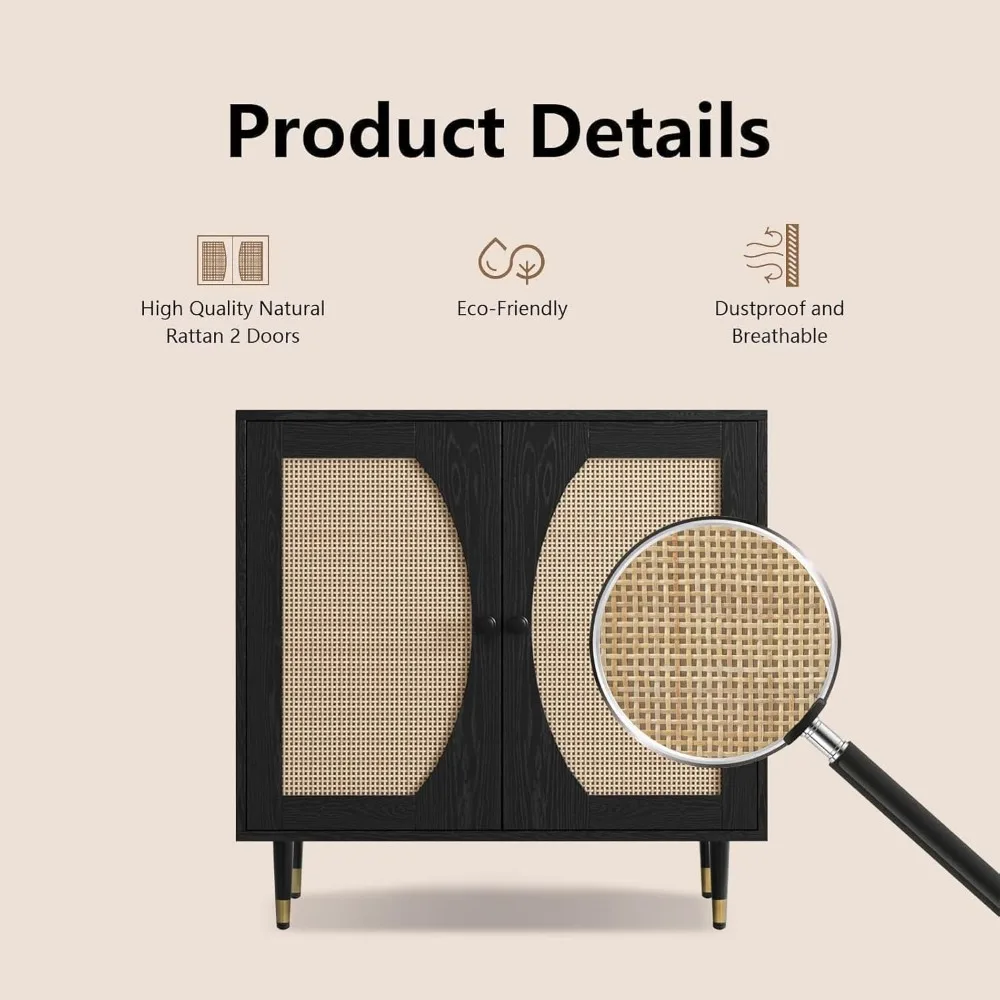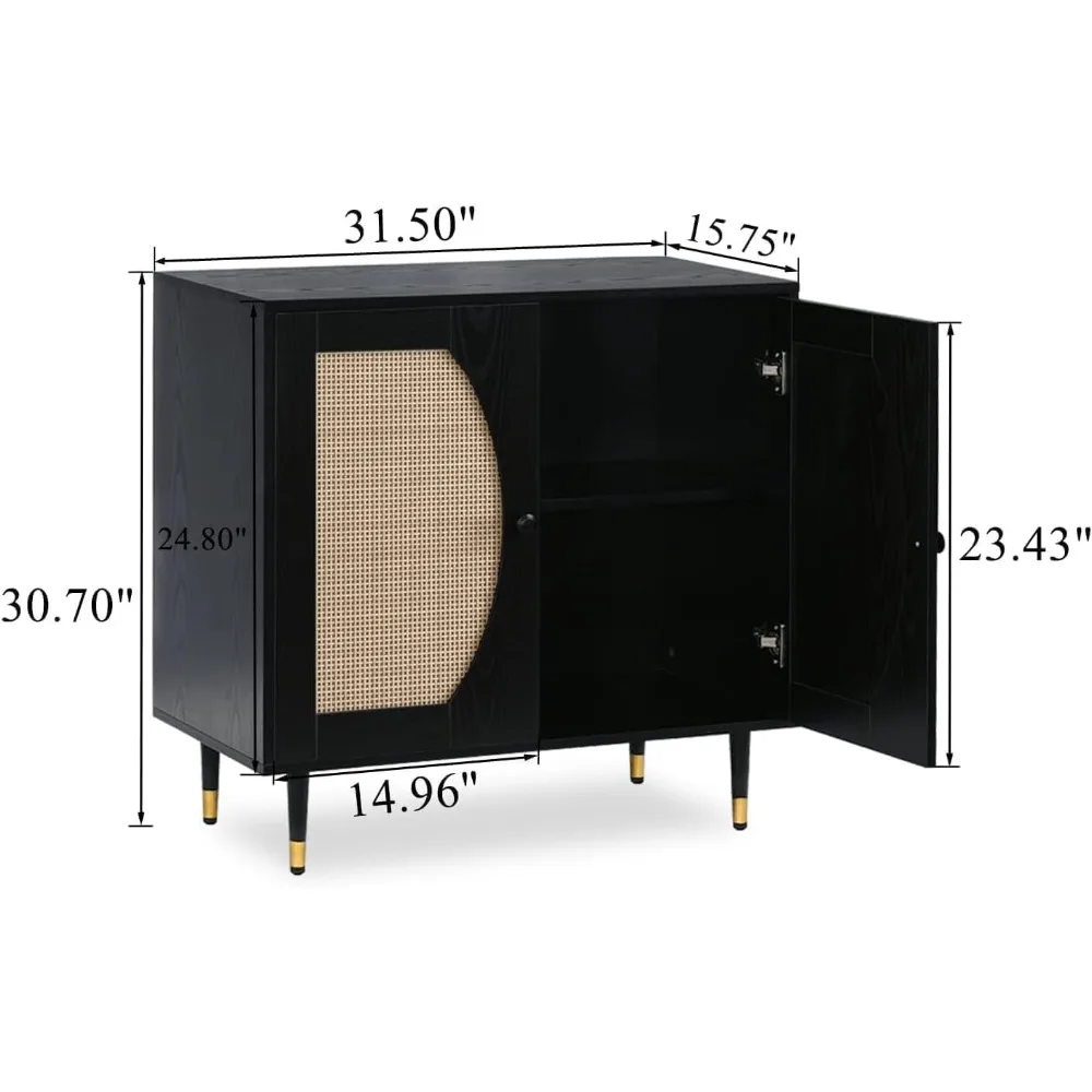 • [Ample Space with Adjustable Shelves]: Measuring 15.75"D x 31.5"W x 30.7"H, the black storage cabinet has 2 large separate spaces inside ideal for your storage needs. The sideboard also features adjustable shelves for taller items such as wine and some wine glasses. This rattan sideboard is breathable and helps maintain proper humidity to protect your belongings