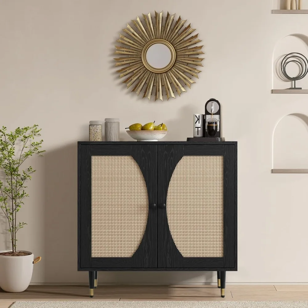 • [More Than Just Sideboards]: You don't need a dining sideboard? With the streamlined design of this natural black buffet sideboard, you can use this black sideboard in your living room and kitchen as a coffee bar. This black rattan sideboard cabinet can be used as an entrance to your hallway or you can use this buffet with storage in your bedroom storage room