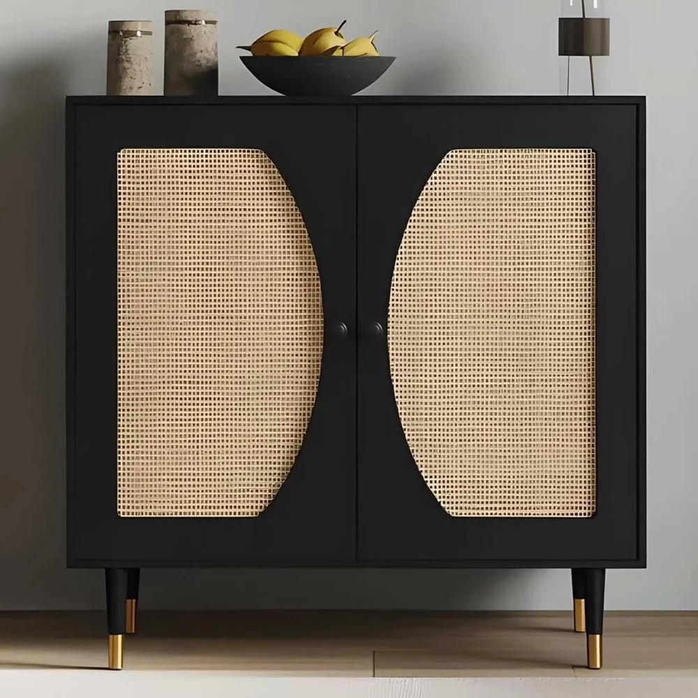 • [Black Gold Luxury & Rattan]:The flattened rattan on the rattan storage cabinet doors are handmade from natural rattan and the black wood grain with gold support legs black and gold luxury style becomes the centre of attention in your home. The curved door pattern gives you a classic and comfortable look