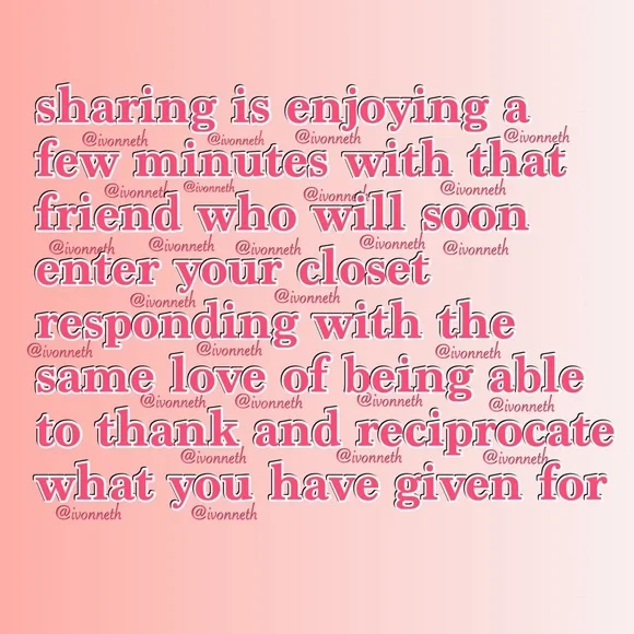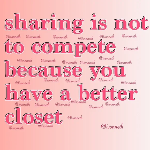 What is sharing a closet for you????????Sharing is the act of reciprocal participation in something, whether material or immaterial.It implies the value of giving (generosity) and of receiving, accepting or accepting what another person offers.Sharing breaks with selfishness and with the values that the other person does not possess, such as kindness and empathy.by sharing There is also a break from the underestimation of that person who thinks that she has nothing to give or offer.sharing refers to giving or distributing something equitably, without conflict and of one's own free will.sharing is not competing because you have a better closet, sharing is to meet and make friendsWhy is this important? Sharing is styling on . When you share listings from other Poshers, you are spreading the Posh Love! New sellers help existing sellers and existing sellers seek out new sellers to help. Helping one another become successful is the Posh Way. Every share benefits the larger community and everyone in the community benefits as a whole.