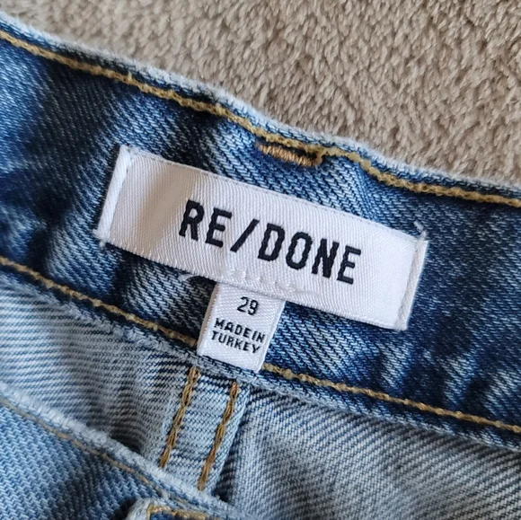 RE/DONE 70s high rise shorts skylight destroyed distressed denim Jeam ShortsExcellent pre-owned condition Size 29Each Re/Done style is unique. Due to the use of reclaimed vintage fabrics, details and colors vary throughout to ensure that each piece is uniquely its own.Soft broken in denim feel that fits just right. Cut offs in medium wash with added vintage characterAs sold on REVOLVE ***Don’t have aaccount yet? Sign up and get $10 off your first purchase with my invitation code: SHOPWITHKOREYSmoke-free homeQuick ShippingAccepting all reasonable offers Bundles welcomed! Save on shippingPlease note that all screens are different. Colors may very.Purchasing this item continues its narrative and reduces new environmental impact. You can be confident that you’re making a difference extending the life of beautiful clothing!