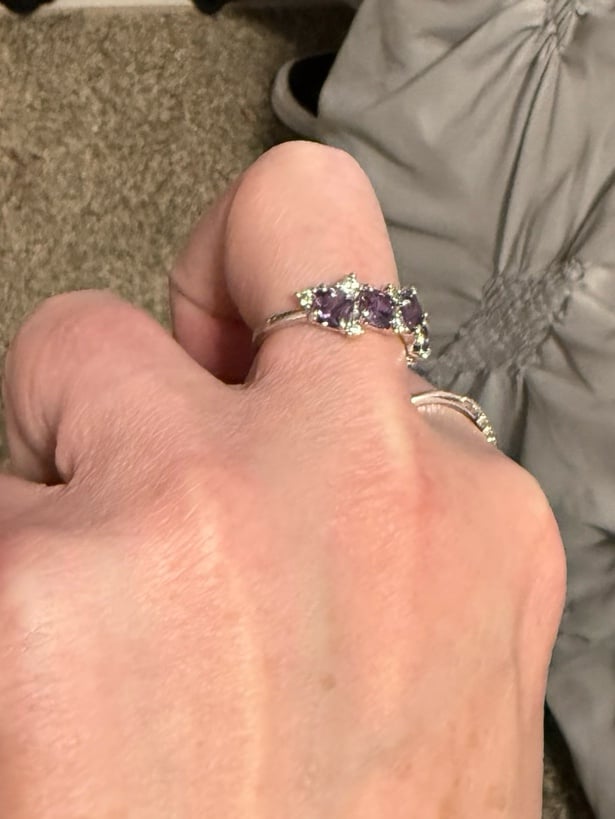 Bomb Party ring: amethyst & cubic zirconia rhodium plating size 9